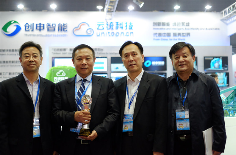 2017年11月9日,遼寧省撫順市工業(yè)和信息化委員會黨委書記 趙晨陽 授市長委托代表撫順市政府專程光臨云統(tǒng)創(chuàng)申展臺。另外,遼寧省撫順市人民政府駐上海聯(lián)絡(luò)處 肖健主任,朱東新處長等領(lǐng)導(dǎo)也光臨云統(tǒng)創(chuàng)申展臺。徐欣董事長與撫順市相關(guān)領(lǐng)導(dǎo)合影留念。